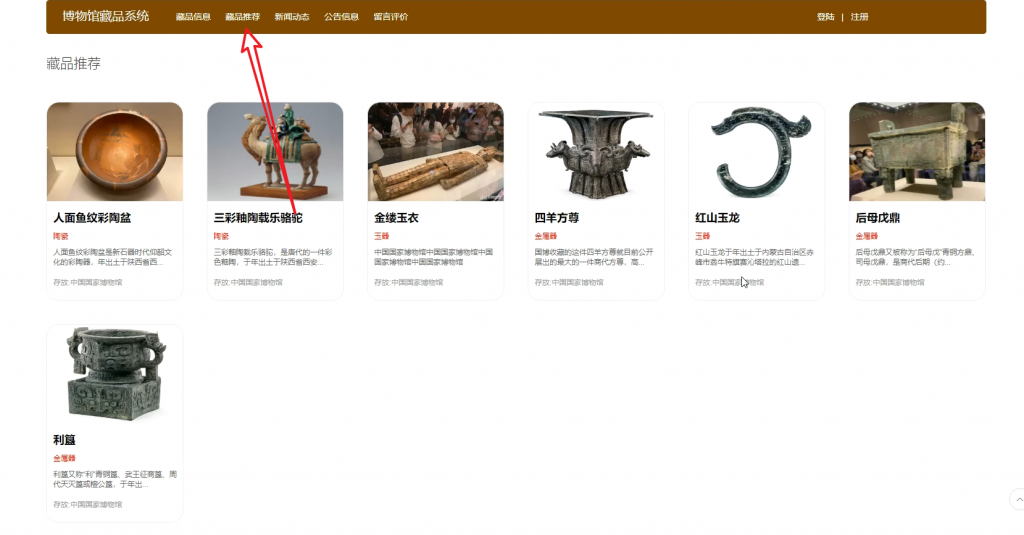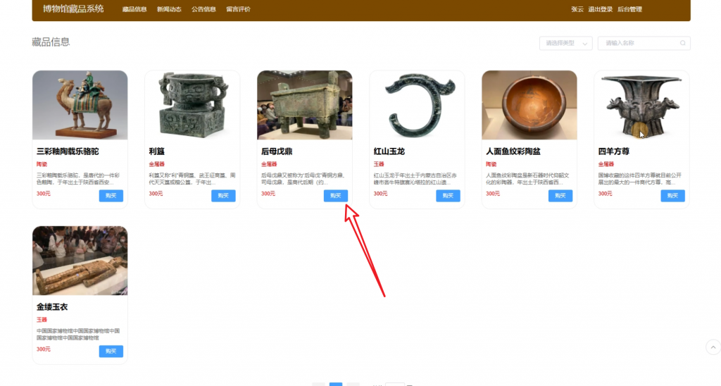 版本一:在导航栏最后增加一个文创商城板块,博物馆内容变更为云南省博物馆。